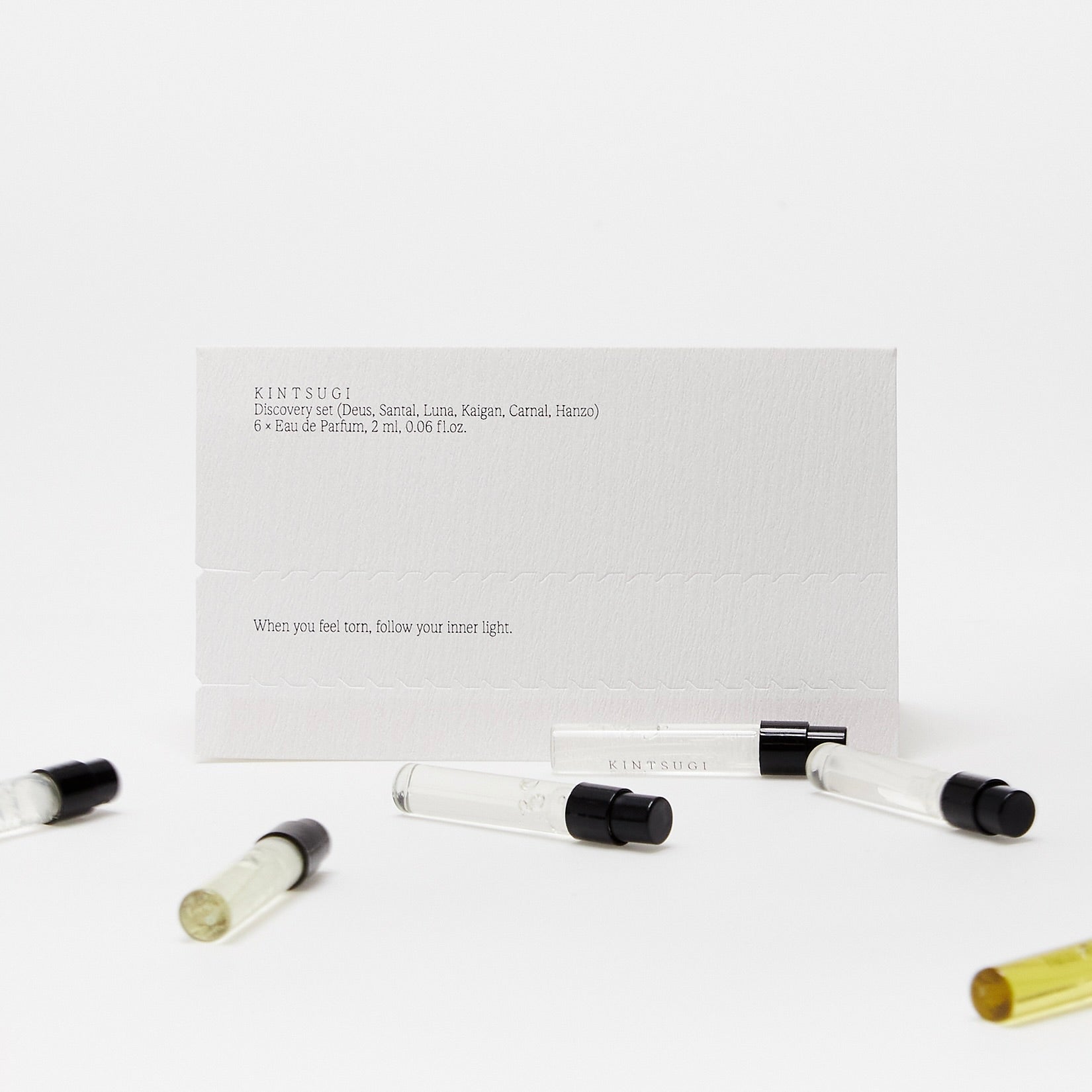 Deus, Luna, Kaigan, Múza, Santal, Hanzo, Taom, Phénix, samples are stored in a luxurious box made of Japanese paper.